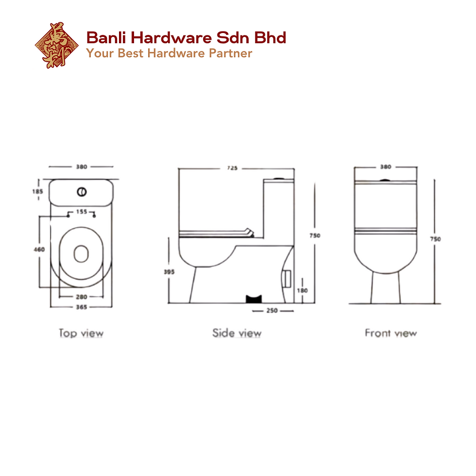 Saniware Washdown One-Piece Closet (WC 2095 A - S250mm)