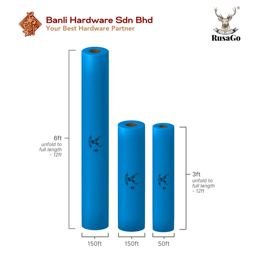 - 3ft (W-Folded; unfolds to 12ft) x 50ft (L)